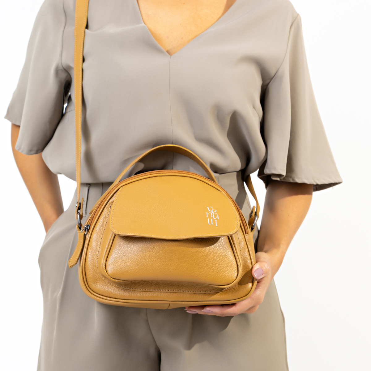 A bolsa Magda é o modelo perfeito para quem busca um design sofisticado e muita praticidade para o dia a dia. Feita em couro, ela possui alça dupla (mão e transversal regulável), duas divisões (bolso frontal com fechamento íman e o bolso principal com fechamento em zíper) e também conta com um bolso interno com fechamento zíper para maior segurança.
