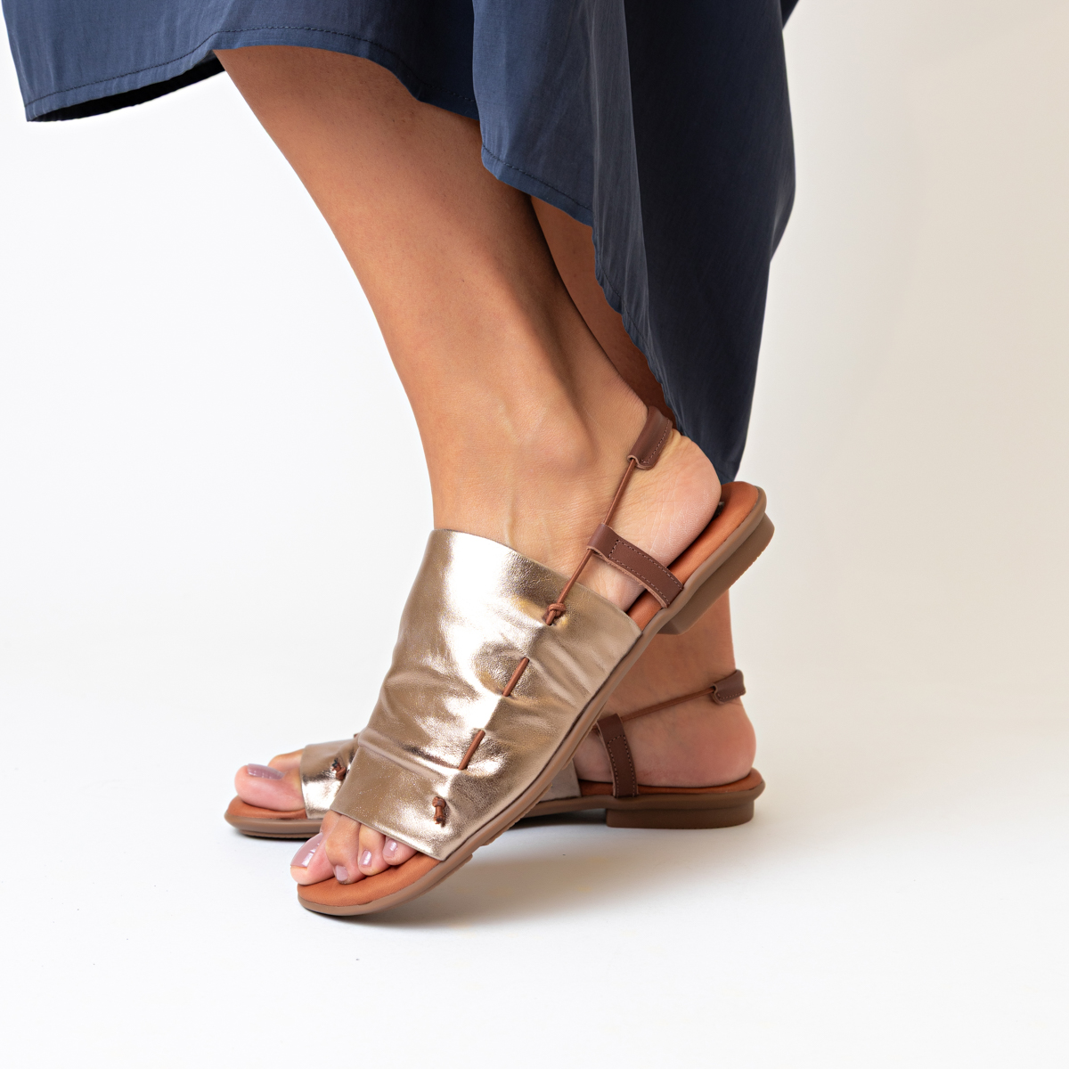 • Evite exposição excessiva ao sol: O couro legítimo pode desbotar ou ressecar se exposto ao sol por longos períodos. Sempre guarde sua sandália em um local fresco e seco, longe de fontes de calor direto.